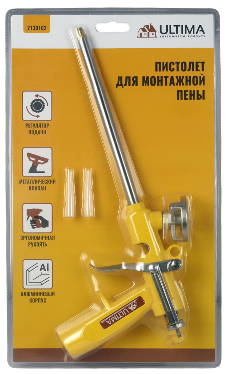 Двухкамерный ствол обеспечивает оптимальный выход пены. Конструкция пистолета, и носики (в комплекте) делают его удобным для работы в труднодоступных местах.